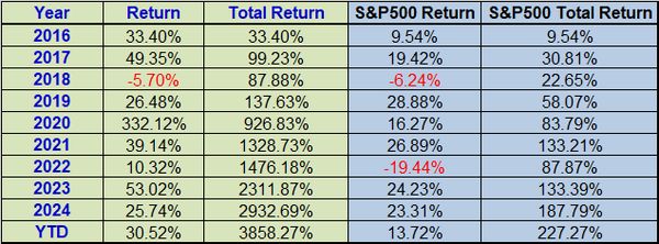 The fund produced 92.22% average annual return over the past five years. If you had invested $10,000 in the fund 8 years ago, your investment would now be worth $396,000. In addition, our investors could convert ordinary income into long-term capital gains on their tax returns and save an enormous amount of money (an additional 10% plus gain, totally legal). Fund Performance as at September 30, 2025 (net of fees).
